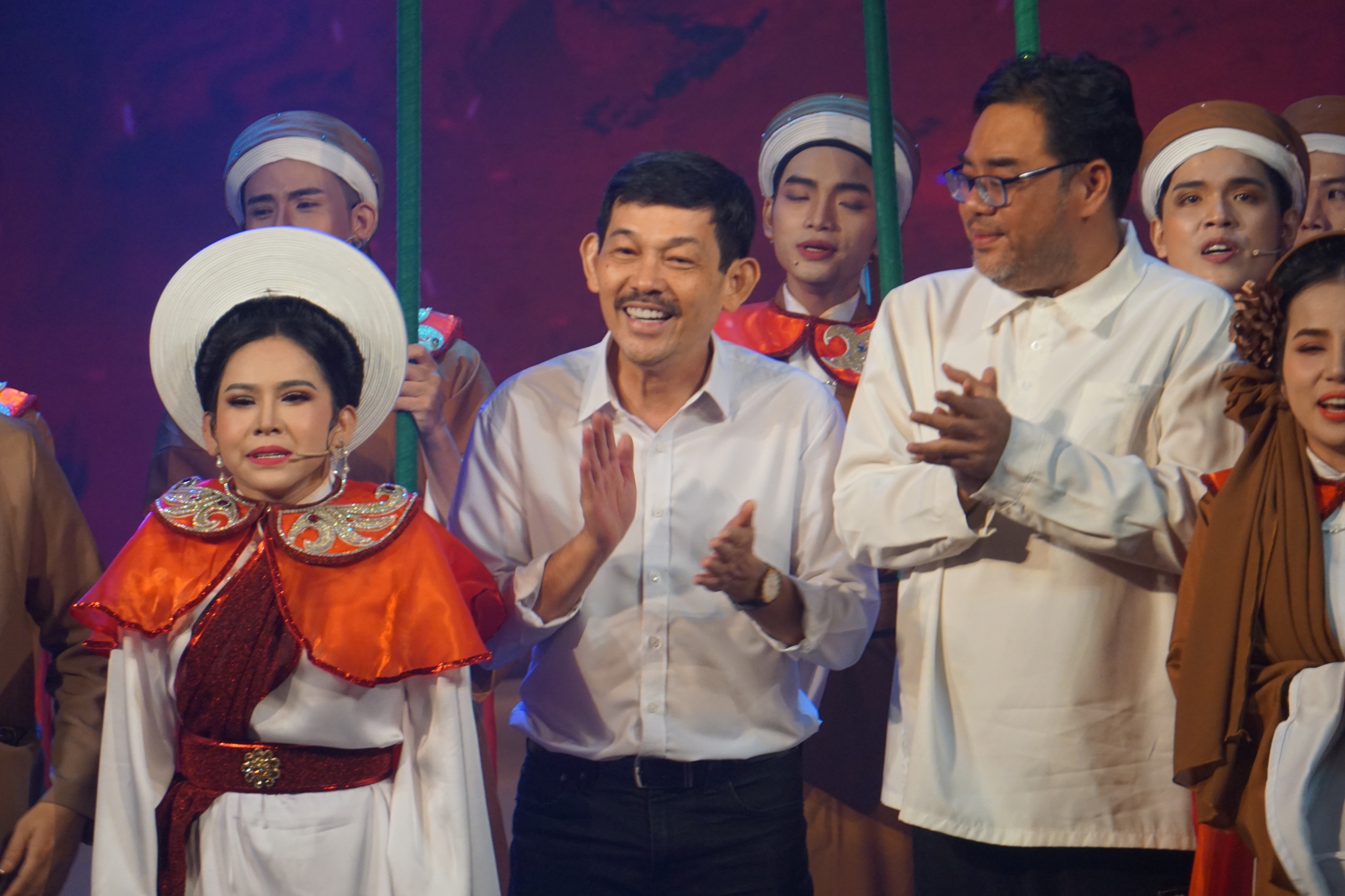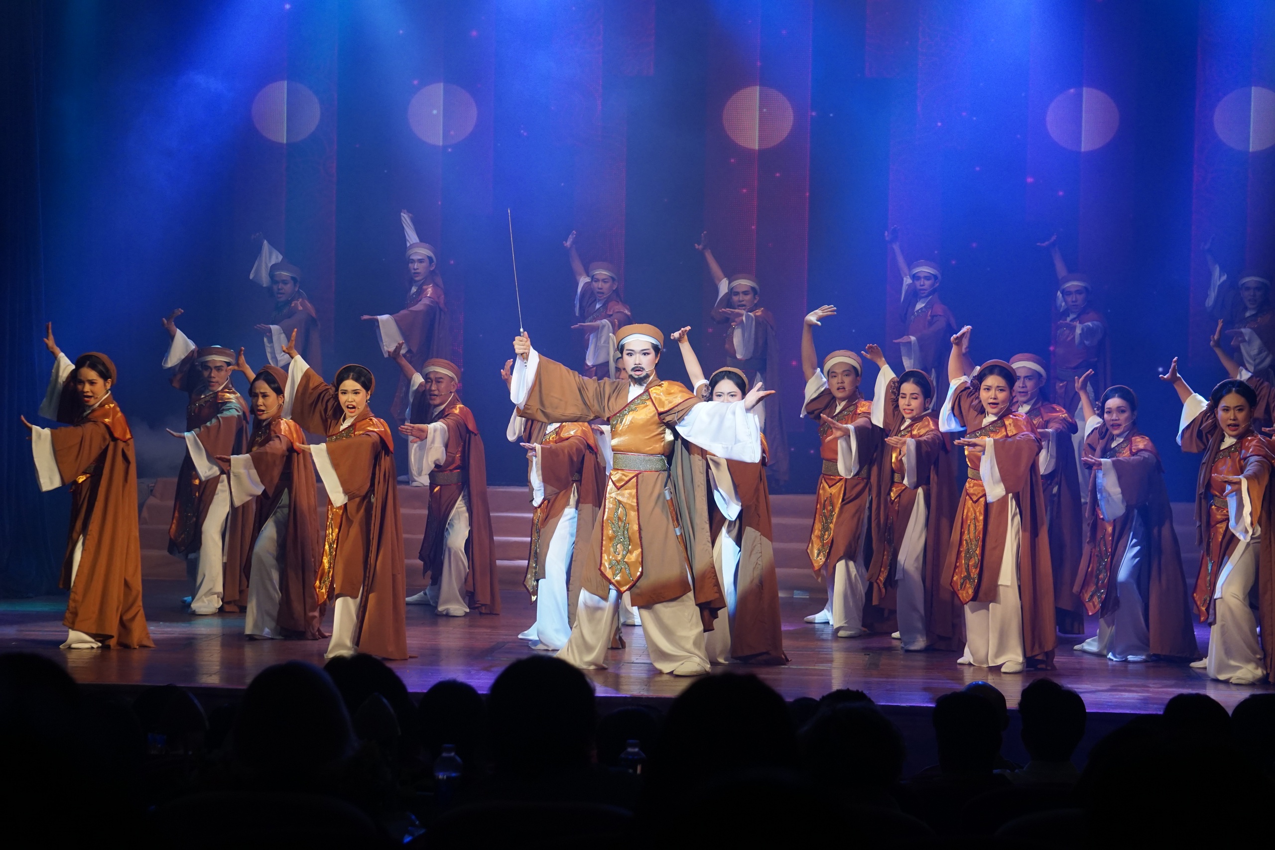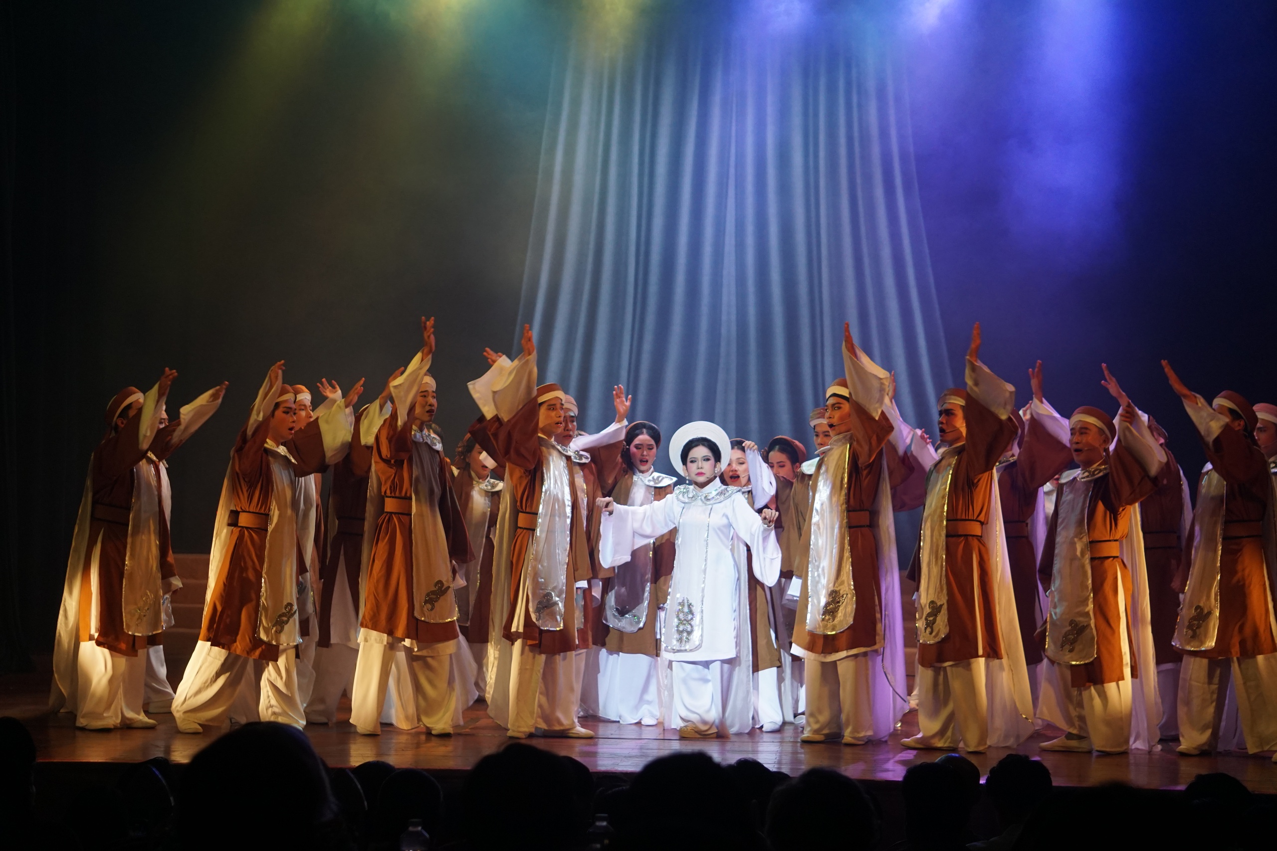 Dàn đồng ca hát, thoại, múa yểm trợ đắc lực cho diễn xuất của NS Bình Tinh trong "Hồn thơ ngọc"