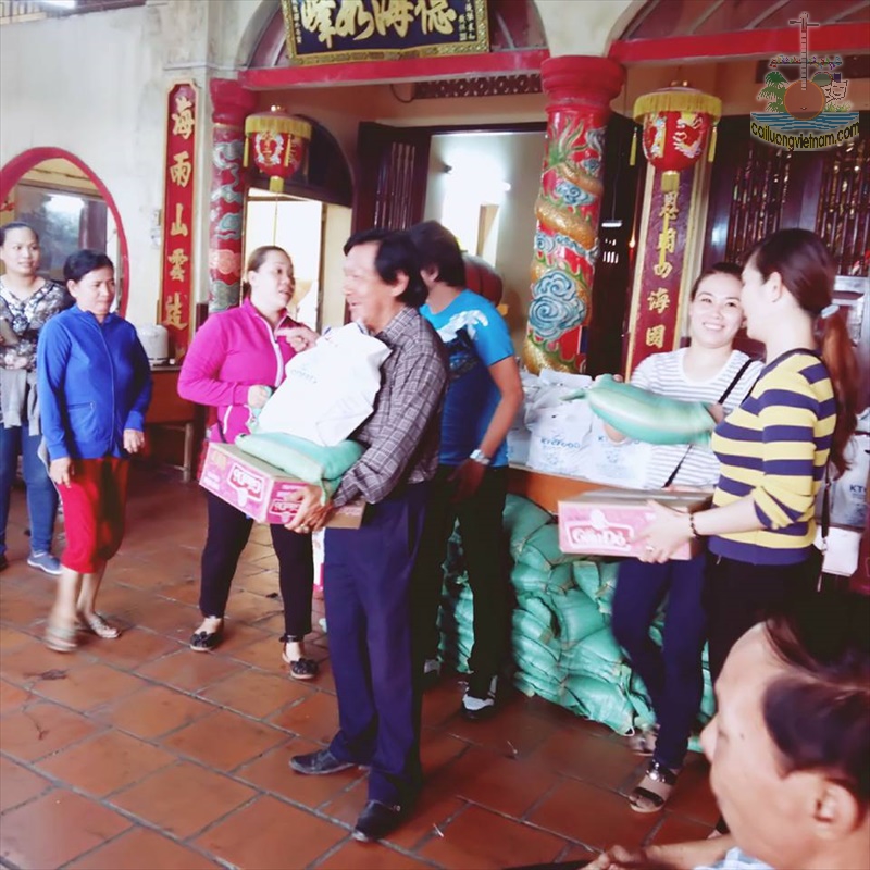 Đình Nhơn Hoà là điểm thuận lợi, sân đình rộng lớn, mọi người tạo điều kiện cho nhóm thiện nguyện CLVNCOM với công việc phát quà !